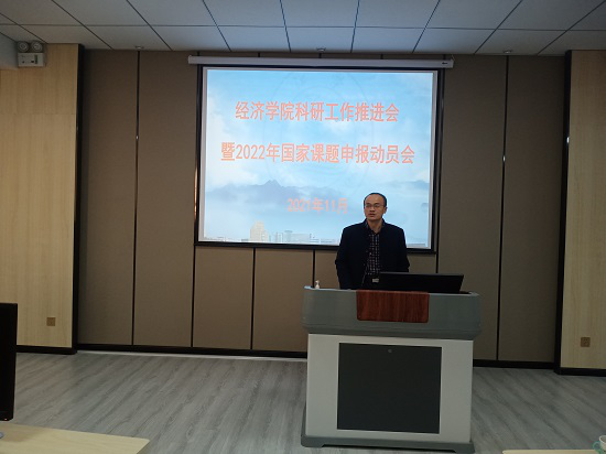 为进一步加强经济公司科研工作,推进2022年国家课题申报,24日下午,公司在文理实验楼309召开科研工作推进会暨2022年国家课题申报动员会,公司领导班子成员、教研科负责人和全体专任教师参加了会议,会议由经理项益才主持。