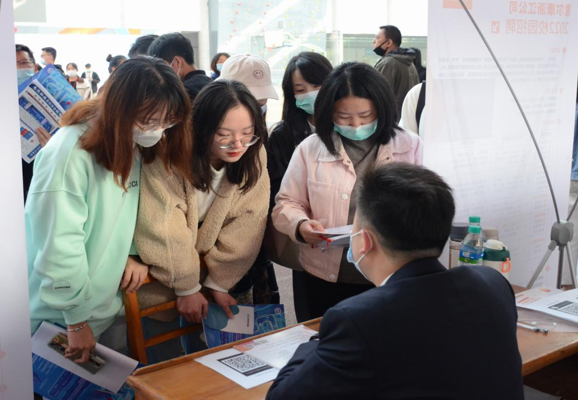 本次招聘会主要服务于2022届经济与管理类1700余名毕业生,邀请了来自长三角、珠三角等地的80多家企业参与,提供了招聘职位300余个,预计招聘3500余人。招聘会场人来人往,气氛十分热烈。