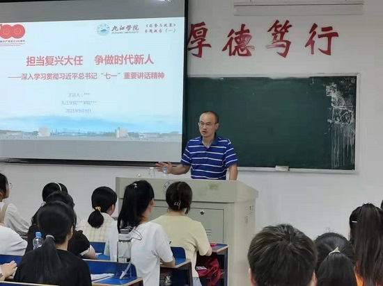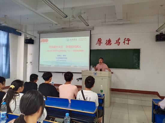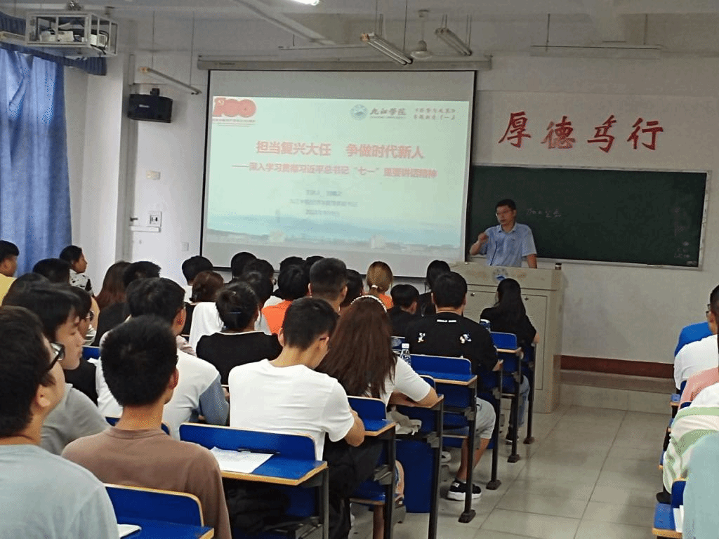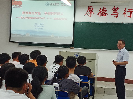 9月9日,在2021级新生刚刚报到入学之际,公司经理项益才、党委书记漆晗东、副书记刘羲之、副经理李华分别走上讲台,围绕学习贯彻习近平总书记“七一”重要讲话精神、树立远大理想等内容,给大一新生们讲授一堂生动的形势与政策思政课。