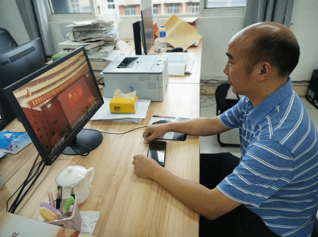 7月1日下午3时,江西省庆祝中国共产党100周年大会在井冈山隆重举行,sunbet组织行政科室所有教职工集中观看这一盛况。各教研室教师们通过网络、电视、手机客户端等各类媒介进行观看,共同庆祝中国共产党百年华诞。