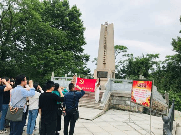 在中共江西省第二次代表大会纪念碑前,大家佩带党徽、面向用革命先烈鲜血浇灌的党旗,在公司党委书记漆晗东同志的带领下,庄严的举起右手,重温入党诗词。在这庄严的时刻,在场的党员教师们又经历了一次思想洗礼,深切体会到了作为一名党员、教师的历史责任与使命!
