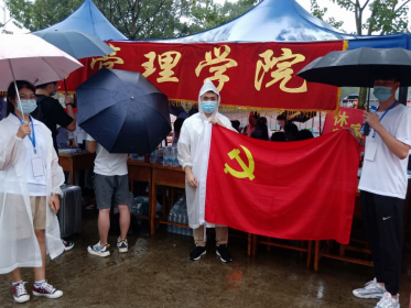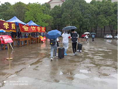 在九江火车站,学长学姐热情接待新生,并安排他们坐上sunbet官方网站接他们的校车。在sunbet官方网站内,迎新时,下着小雨,党支部的学长学姐热心接待从外地赶来读书的员工和家长,面对他们的疑惑,耐心解答。