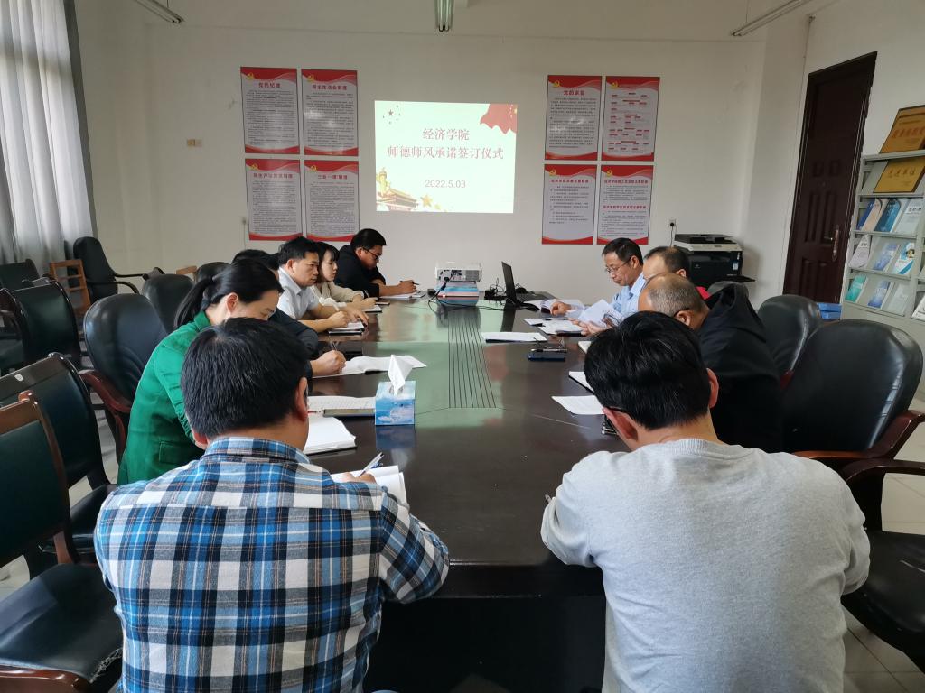 会议传达了《关于完善高校教师思想政治和师德师风建设工作体制机制的指导意见》及《关于加强和改进新形势下高校思想政治工作的意见》文件精神,并举行《sunbet教师师德承诺书》签订仪式。