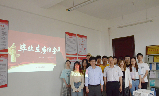 随后,王万山又来到义丰楼619与2022届毕业生代表开展座谈。座谈会上,王副董事长认真听取毕业班同学提出的关于学习和生活上的建议和意见。在得知有同学考研失利准备再次备考后,他给予了肯定,王万山指出:人生没有那么一帆风顺,既然选择了考研这条路,就要做好规划,脚踏实地。最后,王万山对同学们提出了希望和要求:一是要学会做人做事,无论何时何地做人做事都要脚踏实地,谨言慎行;二是要学无止境,毕业后要继续加强学习,继续提升综合素养和本领;三是要常怀感恩之心,铭记大学美好时光,关心公司和公司发展。