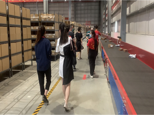 在交流环节,企业负责人介绍了企业沿革,员工风采,荣誉见证,质量体系,销售运输模式等,也介绍到亚洲一号是京东物流自建的亚洲范围内建筑规模最大、自动化程度最高的现代化智能物流项目之一。随后团队成员了解到商品的立体化存储,拣选,包装,输送等环节大规模应用自动化设备、机器人、智能管理设备来降低成本和提升效率。企业之旅,开阔了自己的视野,亲眼所见的场景比照片上的了解更加直观,身在企业,看见精准的机器在运行,这是校园内不会出现的场景。