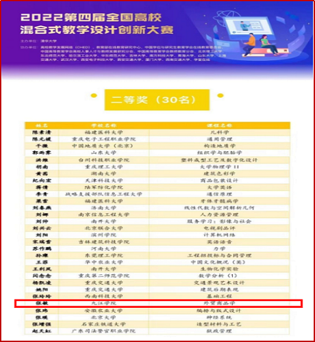 11月27日,第四届全国高校混合式教学设计创新大赛落下帷幕,我院国际贸易张敏老师领衔团队的“基于1核2融3阶的外贸商品学混合式教学模式设计”在全国55项决赛作品中脱颖而出获得全国二等奖,是大赛举办四届以来江西省高校唯一进入决赛的教师。