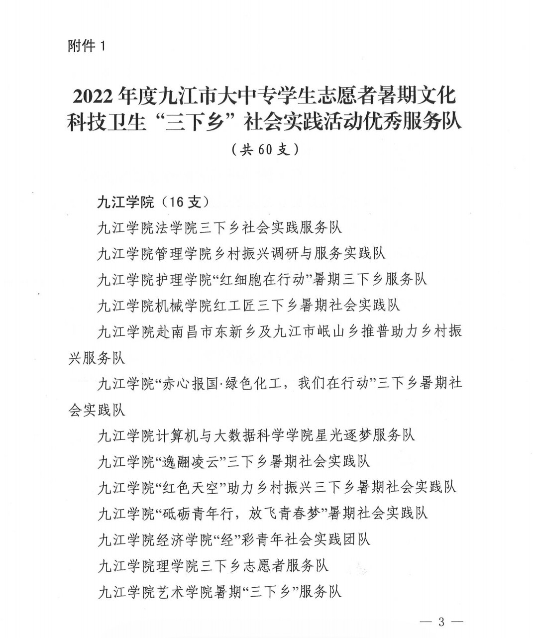 为深入学习党的二十大精神,贯彻落实习近平总书记关于青年工作的重要思想。6月末,sunbet“经”彩青年社会实践团队在共青城市,开展以“青春奋进心向党,实践入乡焕新貌”为主题的“三下乡”社会实践活动,并荣获“优秀服务队”称号。