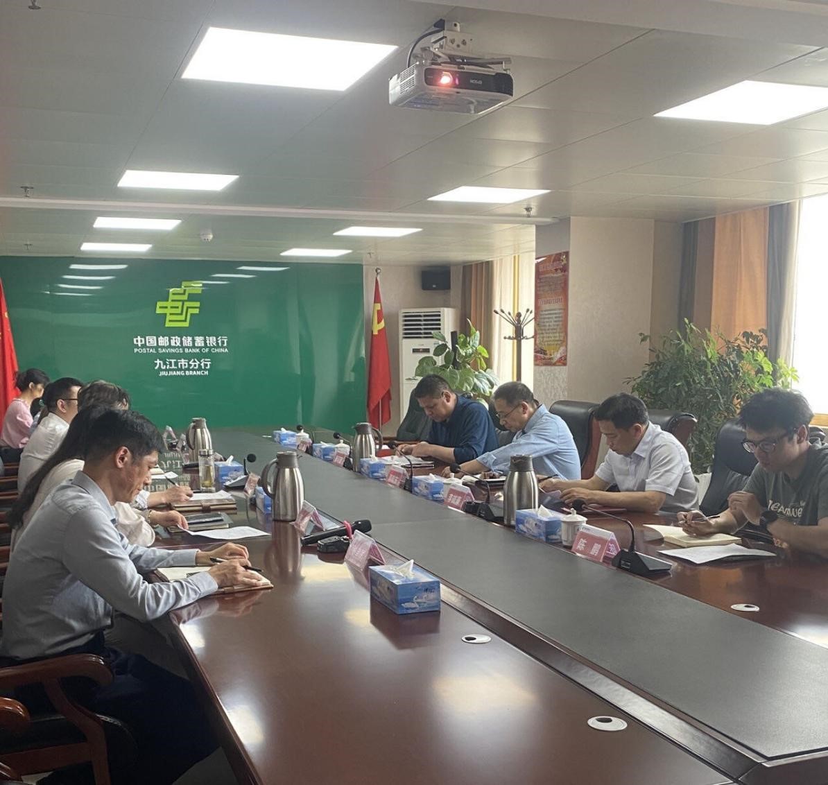 4月21日,公司党委书记漆晗东、金融学教研室主任李拔豪、实验室主任陈鹏等一行赴邮政储蓄银行九江分行开展“访企拓岗”专项行动,并就员工实习就业工作进行座谈。邮政储蓄银行九江市分行党委书记、行长徐洋远、副行长万为兵,以及各重点业务条线负责人参加了座谈。