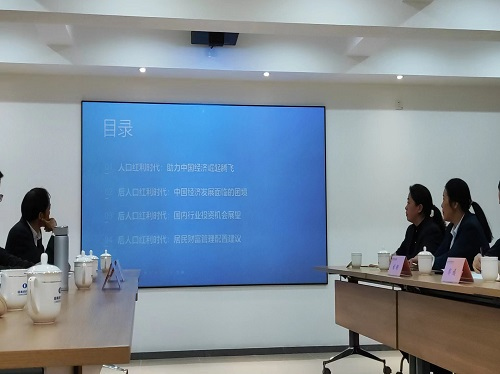 参观结束后,双方进行了主题研讨。国泰君安证券党委书记鄢嫣汇报了在党的二十大精神的指导下,公司取得的各项工作成果,投资顾问袁华做了《后人口红利时代的选择》报告,财富管理师汪晶晶做了《浅谈财富管理》报告。老师们都表示是非常有用的建议,受益匪浅。