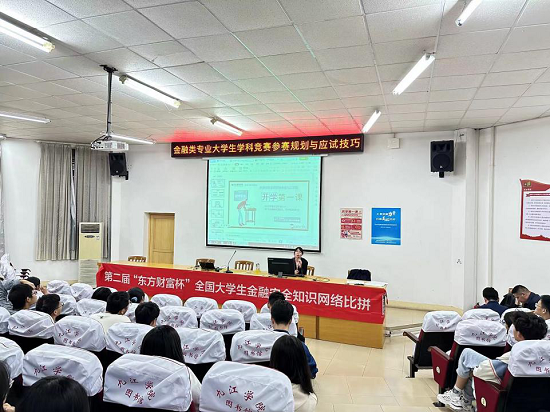 本次活动首先由九江营业部王剑为同学们讲解有关学科竞赛的定义,分享有关学科竞赛的分析报告,初步提升同学们对竞赛的兴趣和对学习的热情。然后讲师为同学们介绍了“东方财富杯”2023年全国老员工金融安全知识网络比拼活动和第二届全国ETF模拟投资菁英挑战赛,让同学们了解到了金融安全的重要性,同时也让同学们了解了有关金融投资的相关知识。活动最后,讲师邀请同学提出自己的疑问,各班同学均积极提问有关竞赛的问题,讲师也一一耐心为同学解答,本次活动得到了较好的反响。