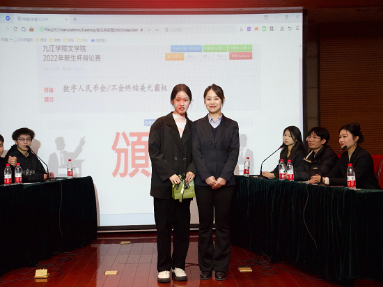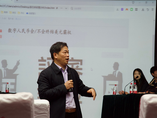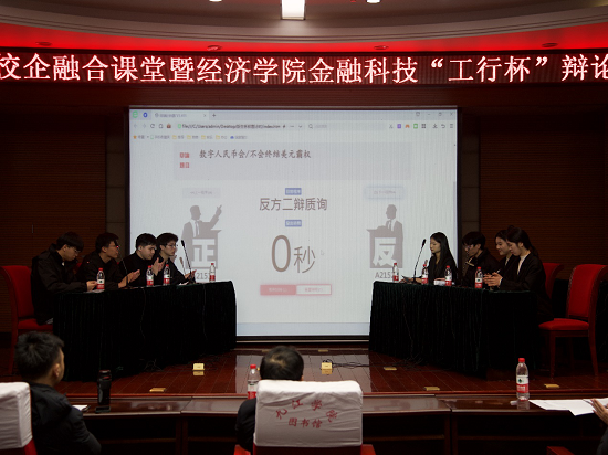 为进一步拓展推进校企合作育人渠道,12月1日下午,金融学教研室在逸夫图书馆报告厅举办首届金融科技校企融合课堂暨“工行杯”辩论赛金融工程专业A2151和A2152两个班员工代表分别作为正反方,以“数字人民币会不会终结美元霸权”为辩题展开辩论。金融学教研室部分老师、院团委和工商银行九江市十里支行实务专家参加活动,并担任辩论赛评委,此次活动得到工商银行九江市十里支行的赞助支持。