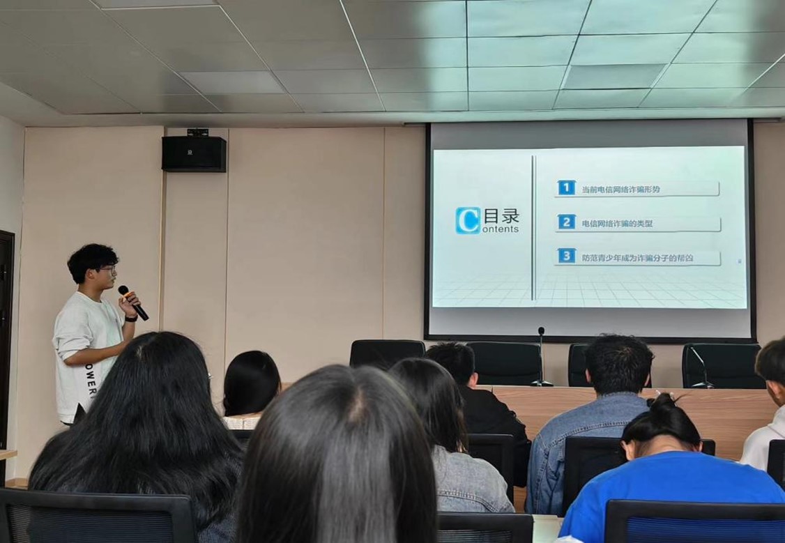会上主讲人向同学们分析了各种电信诈骗手段,结合典型案例重点讲解了常见的校园诈骗,特别是针对大中院校新生的诈骗,提出了相应的'防诈骗策略,呼吁大家认真学习防诈知识,增强防范意识,提高防诈能力。