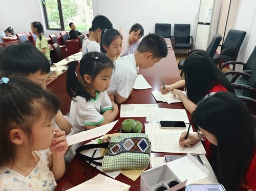 活动伊始,志愿者们通过中国书法起源和发展历程引入书法教学。活动中,志愿者们手把手教小朋友们学习基础笔画技巧。在教学过程中,志愿者们注重培养孩子们的耐力和审美能力。在锻炼基础技巧的同时,也鼓励他们展现创造性。最后,志愿者们通过书法作品评选展示这一形式,调动孩子们对书法的热情,让他们深入到书法实践教学中来!