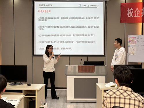 《商业银行业务与经营》是公司首批校企合作立项共建课程,由公司课程团队与邮储银行九江支行实务专家团队共同建设。本次课采取校银双方双师同堂的方式完成。