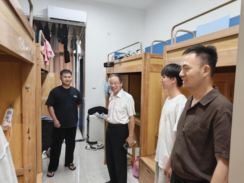 在员工宿舍,漆书记看到留校员工都在潜心学习,他勉励同学们要养成良好的学习生活习惯,合理安排时间,认真复习备考,祝愿同学们学习进步,顺利实现梦想。