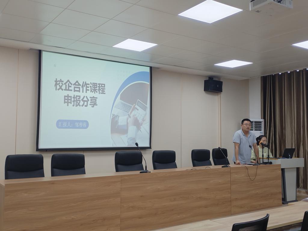 为进一步深化公司地方应用型转型发展,加强校企合作协同育人建设,强化一流课程的建设和应用,全面推动公司课程高质量建设,提升公司人才培养质量,公司于9月11日下午在义丰楼602会议室举行“校企合作一流课程申报及建设经验分享会”,分享会由邹睿蓉副教授主讲,公司全体专任教师参加,副经理洪定军主持。