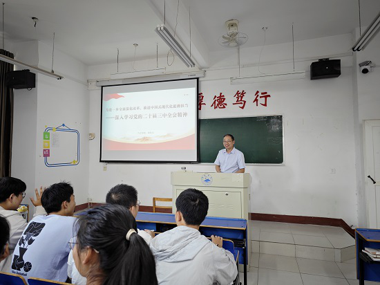 授课过程中,两位领导围绕“进一步全面深化改革、推进中国式现代化”的历史背景、战略部署、基本原则、重要意义及青年担当五个方面,旁征博引讲案例,深入浅出地阐明了“进一步全面深化改革、推进中国式现代化”的深刻内涵,引导同学们如何在强国建设的征途中成长为一个有信仰、敢担当、能吃苦、肯奋斗的社会主义建设者和接班人。