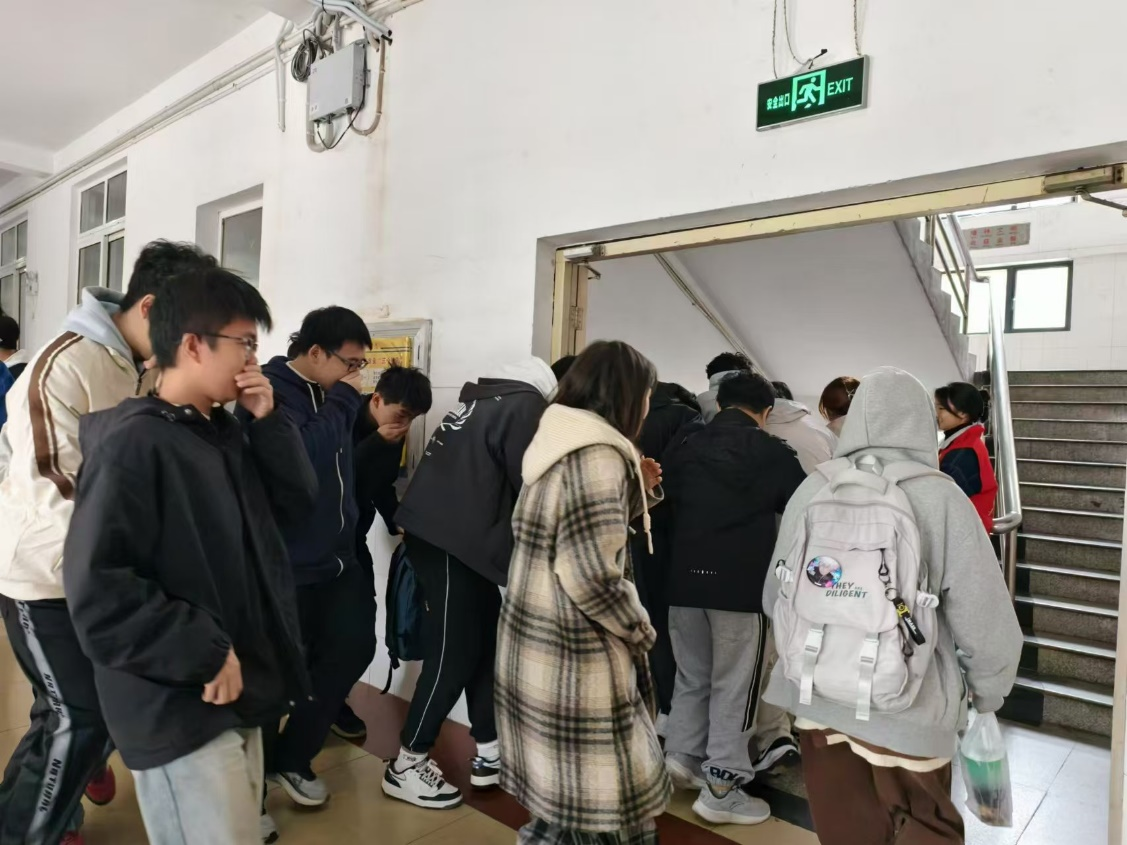 本次消防演练活动以模拟火灾现场开展,旨在加强sunbet全体师生的应急逃生能力。消防演练活动开始之后,处于义丰楼的师生迅速做到弯腰、低头,用手捂住口鼻。与此同时,师生们在志愿者的引导下,按照预先制定的疏散路线进行撤离。在疏散期间,师生们严格遵循“不推不挤、快速疏散”的原则,迅速而有序地从教室撤离到指定的安全区域。整个过程组织严密,紧张有序,各环节紧密配合,达到疏散演练目的。