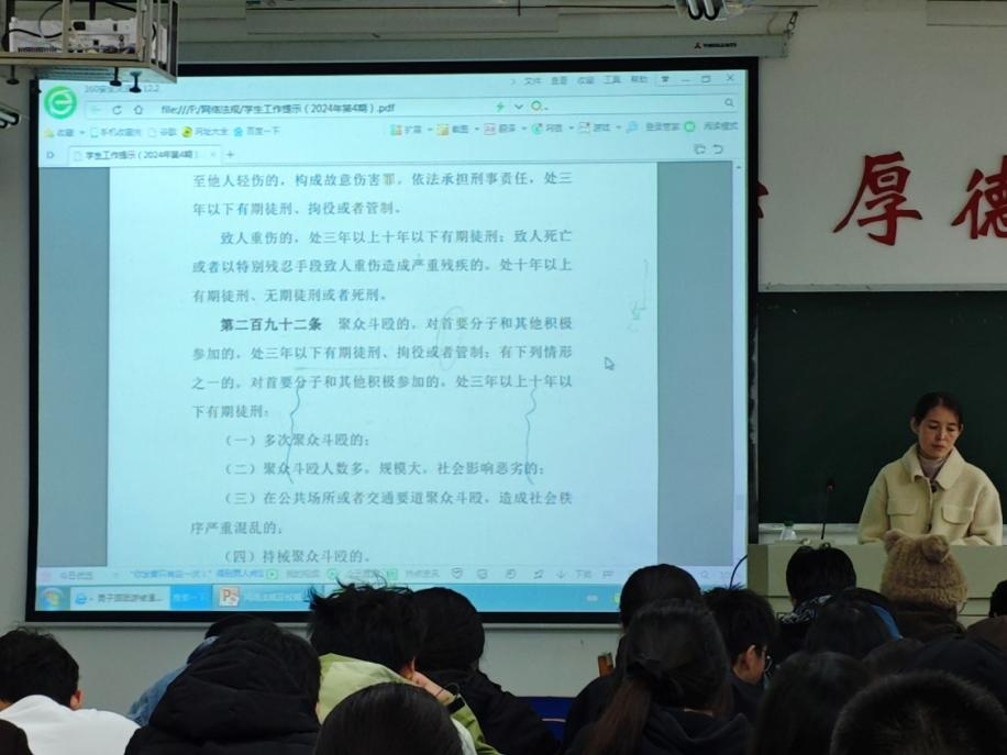 班会开始,老师通过一个个真实生动且贴近员工生活的法律案例直观地呈现了违法犯罪行为的严重后果,让同学们真切感受到法律的威严与不可侵犯。