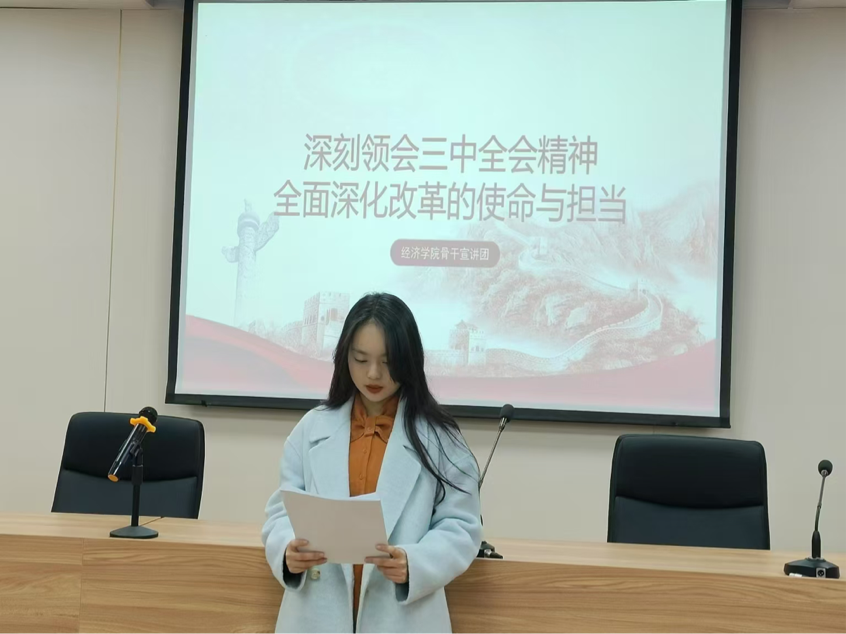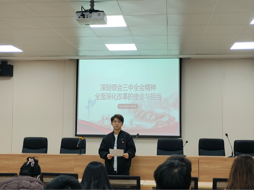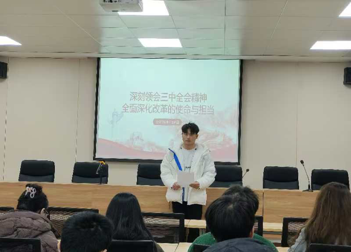 为深入基层团支部,引导青年学子深刻理解全面深化改革的使命担当。十一月初,sunbet于义丰楼六楼会议室组织开展了主题宣讲活动。此次活动由sunbet骨干宣讲团的高子奇、熊磊、胡雪晴担任主讲,于各个团支部开展。