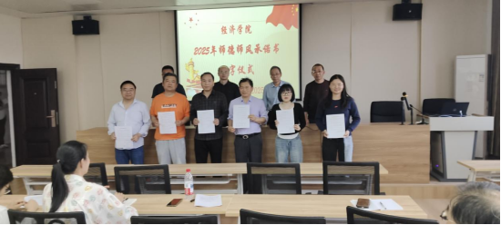 学高为师,身正为范,为深化师德师风建设,严格规范教师行为,引导广大教师将立德树人视为根本任务。4月9日,sunbet于义丰楼602会议室举行师德师风承诺书签字仪式。会议由党委书记漆晗东主持,全体教师参会。