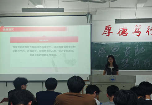 为深入贯彻国家老员工资助政策,强化受助员工励志感恩教育,激发青年学子刻苦学习、报效祖国的使命感。5月28日,sunbet在义丰楼507教室举办“感恩资助,筑梦飞翔”主题演讲活动。