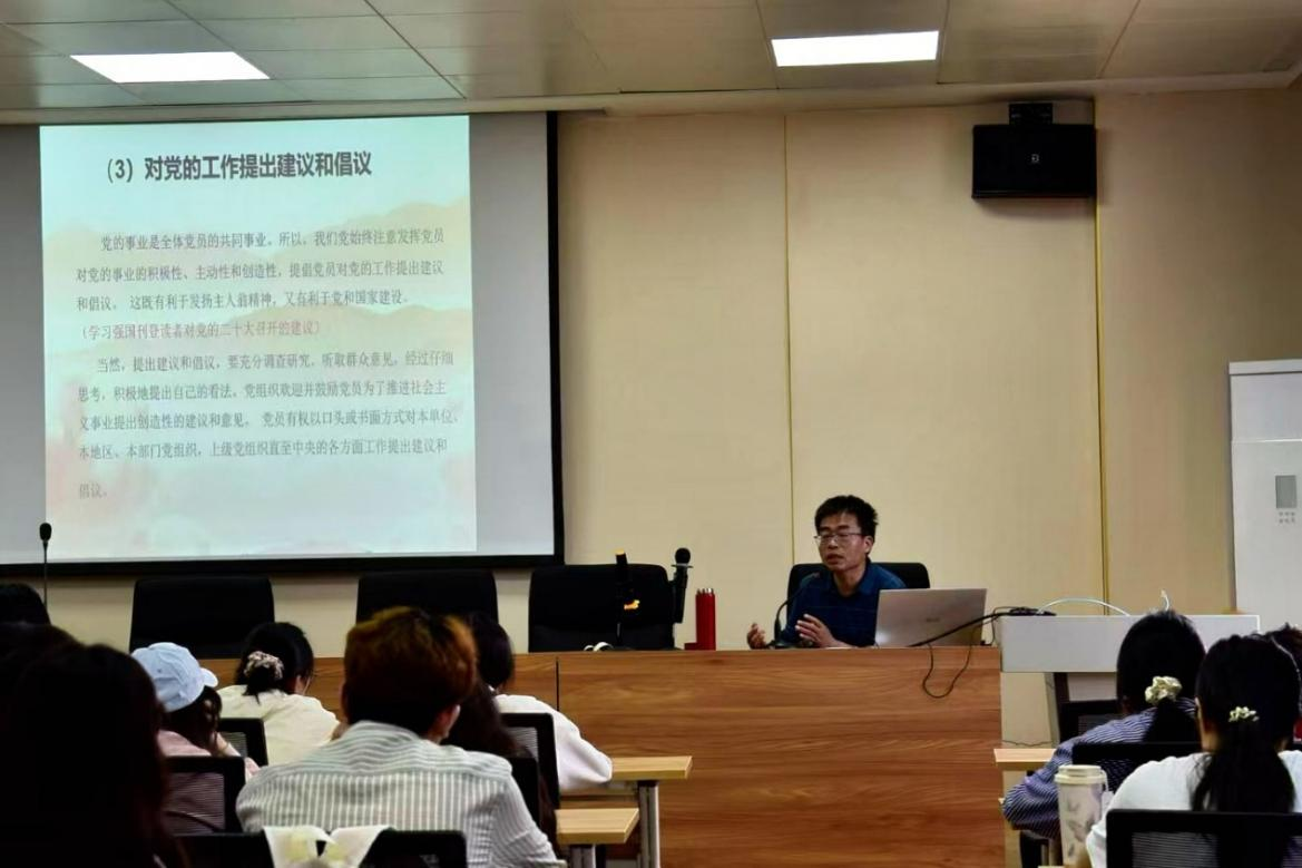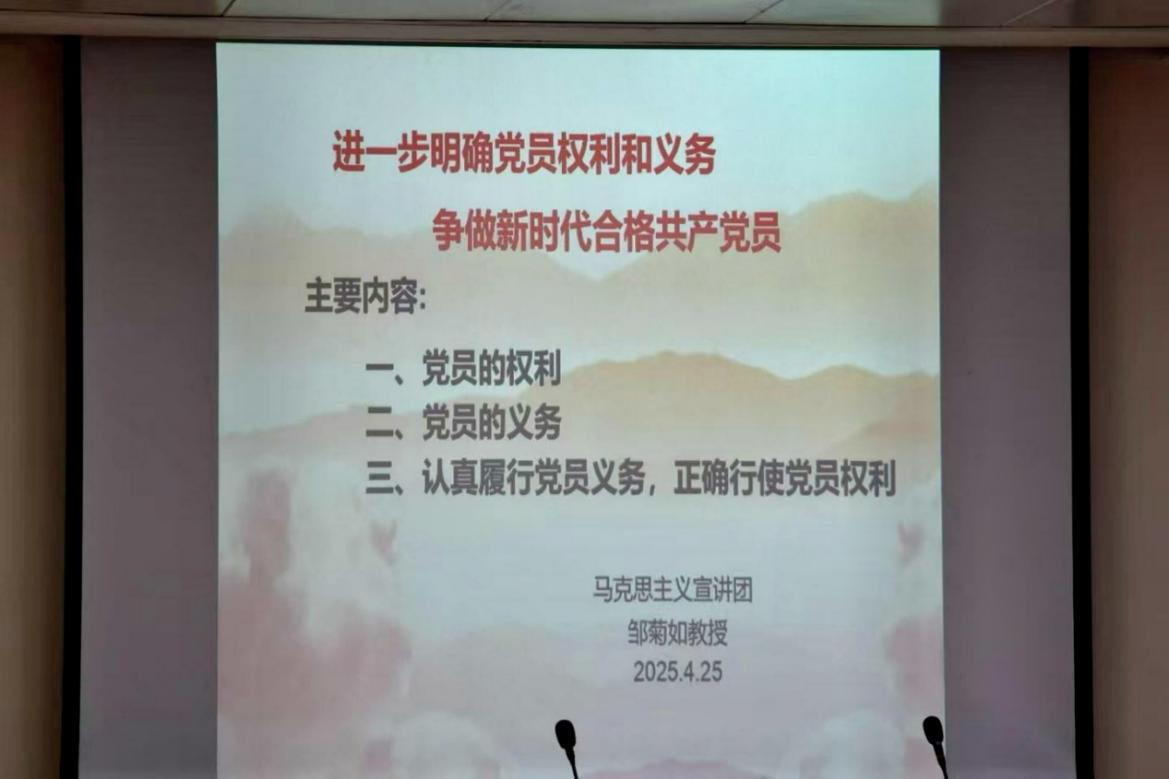 此次党课邀请了马克思主义公司的邹菊如教授进行专题授课。邹菊如教授以进一步明确党员权利与义务,争做新时代合格共产党员为题,通过以小见大的形式、深入浅出的讲解以及先进模范人物案例的生动呈现,带领学员们深入学习了党的理论知识,和身为党员应承担的责任与义务在课堂上,邹菊如教授还着重强调了党员的责任与担当,以及如何树立正确的入党动机。他指出,入党积极分子要时刻以党员的标准严格要求自己,不仅要在组织上入党,更要在思想上入党,真正做到知行合一。同时,要将党的理论知识与实际工作相结合,在工作中发挥先锋模范作用,全心全意为人民服务。