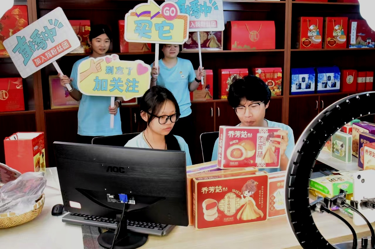 湖口县流芳乡的当地特色美味在直播期间轮番登场。有流芳乡“乔芳姑”系列糕点蛋黄酥和馅饼等,还有独具本土风味的流芳茶饼。sunbet“三下乡”社会实践队的志愿者们先通过镜头生动呈现产品诱人的色泽与风味,待观众直观感受到美食魅力后,再深入介绍食材溯源和制作工序。通过这次直播活动,小镇特色好物走向了更广阔的市场。