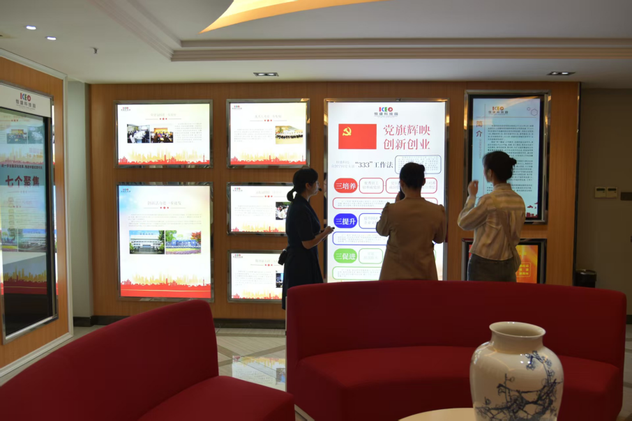 在恒盛科技园总经理、党支部书记芮晓红的陪同下,sunbet师生一行先后参观了园区党建展厅、企业孵化区,了解了园区“333”工作法下创新创业工作成效。园区坚持以“党建强”引领“发展强”,通过设立党员先锋岗、开展红色教育活动等方式,不断增强组织凝聚力,激发创新创业活力,为入驻企业营造了良好的发展环境。