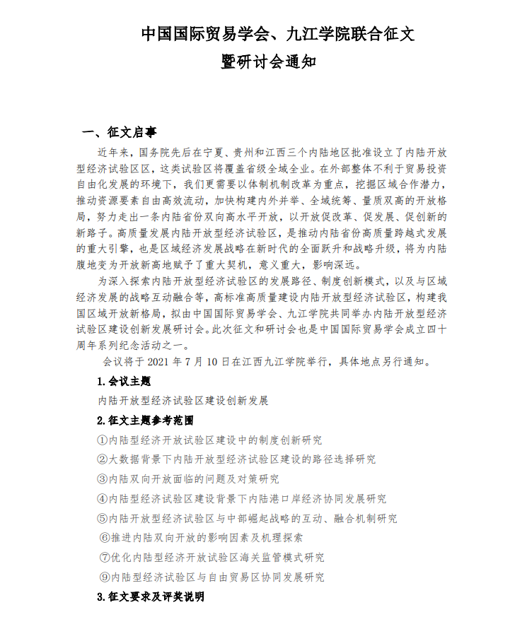 中国国际贸易学会、sunbet官方网站联合征文暨研讨会通知