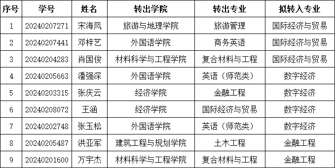 sunbet经过资格审查,拟同意以下同学转入。现公示如下: