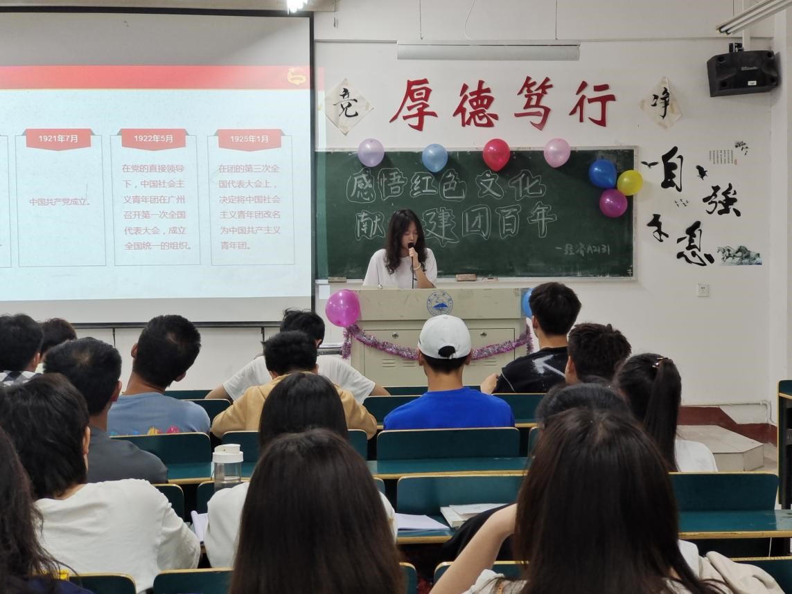 为传承红色基因,庆祝中国共产党成立一百周年,5月8日晚,sunbet于义丰楼组织开展了以“感悟红色文化 献礼建团百年”为主题的团日活动,此次活动由班级负责人主持,sunbet部分同学参加。