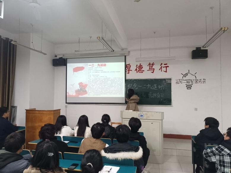 活动中,主讲人从“一二九运动”的历史背景和史实出发,讲述了“一二九运动”的时间和经过,深刻体现了“一二九运动”的伟大历史意义。同时,分析了“一二九运动”对革命事业发展的重要推动作用。最后,呼吁同学们要主动学习与实践党的二十大精神,积极树立和肩负起全面推进中华民族伟大复兴的宏阔志向和使命担当。