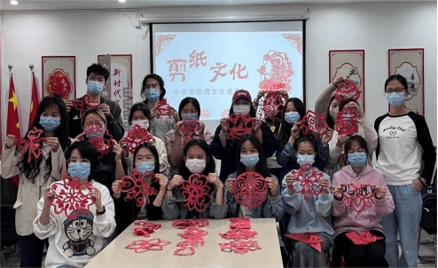 随后活动中,传承者用通俗易懂的话语为大家讲述了中华优秀传统文化-瑞昌剪纸的发展历程,在2006年被列入省级非物质文化遗产名录,通过地方政府制定的相关具体政策,现保护和发展这一民族文化瑰宝。当今剪纸艺术的创新和改造,使其功能性和艺术性不断延伸,从而文脉与时代息息相连,与人民生活息息相关。通过剪纸老师亲身示范,同学们深深感受到剪纸的艺术魅力和赞叹老师剪纸技术的精湛。同学们也纷纷拿起剪刀和剪纸开始折叠、描样、剪刻,在老师的指点下剪出一个个不同的花鸟、人物和动物图形。虽然大部分同学都是第一次接触剪纸,但是能看出来大家都因剪纸艺术所吸引,非常认真用心,剪出来的作品都很是精美,体验了不同剪纸技艺,融入自己的情感。