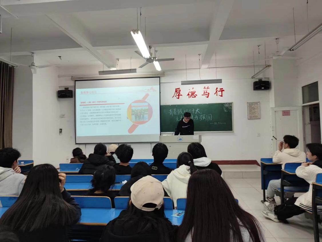 活动中,主讲人带领同学们学习了党的二十大精神,并围绕同学们提出的成长困惑以及关心的就业、升学等问题进行有针对性的引导,激励他们厚植家国情怀,涵养进取品格。同时,结合了几个优秀青年的相关事例,点明了青年员工对国家发展对重要作用,并且对当代青年如何将“小我”成长融入“大我”奋斗话题进行研讨。最后,呼吁同学们要善于向先进典型学习,在一点一滴中完善自己,从小事小节上修炼自己,以自己的实际行动学习先进、保持先进、赶超先进,要积极弘扬奉献精神,凝聚起奋斗新时代的强大力量。