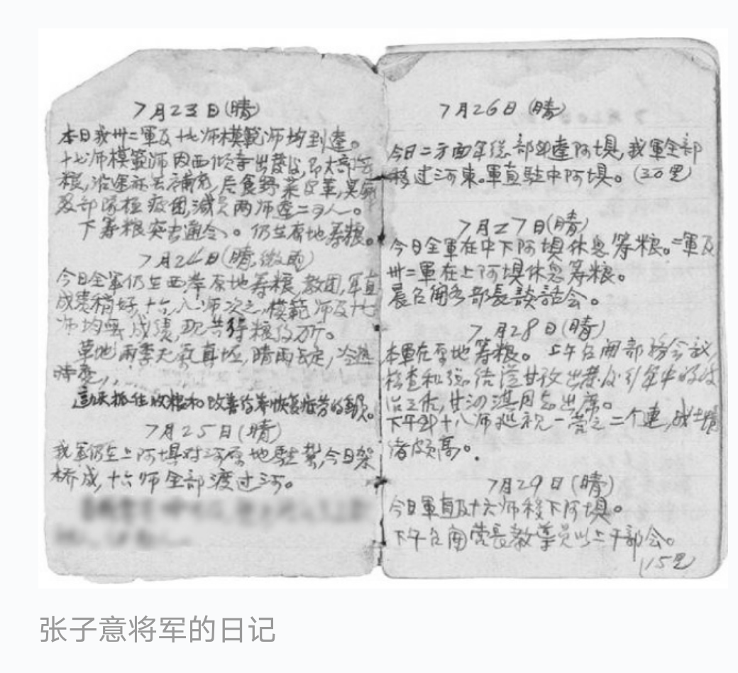 张子意将军的日记珍藏在中国国家博物馆。周忠瑜介绍,张子意将军的长征日记如今保存下来的只有1936年7月10日至12月5日期间的内容,日记对研究红军在班玛的事迹非常重要。