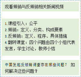 倾销是一种不正当销售行为,以低价排解竞争对手为目的,威胁企业与国家利益。面对错综复杂的世界经济环境,为抵制不正当竞争行为,我们外贸人要以社会主义核心价值观武装自己,维护好国家和企业利益。因此,本课程思政教学案例将社会主义核心价值观教育分散融入倾销与反倾销相关知识点课堂教学中,特别是对于公平、法治、诚信、爱国、敬业的理解,结合倾销与反倾销的具体案例展开。